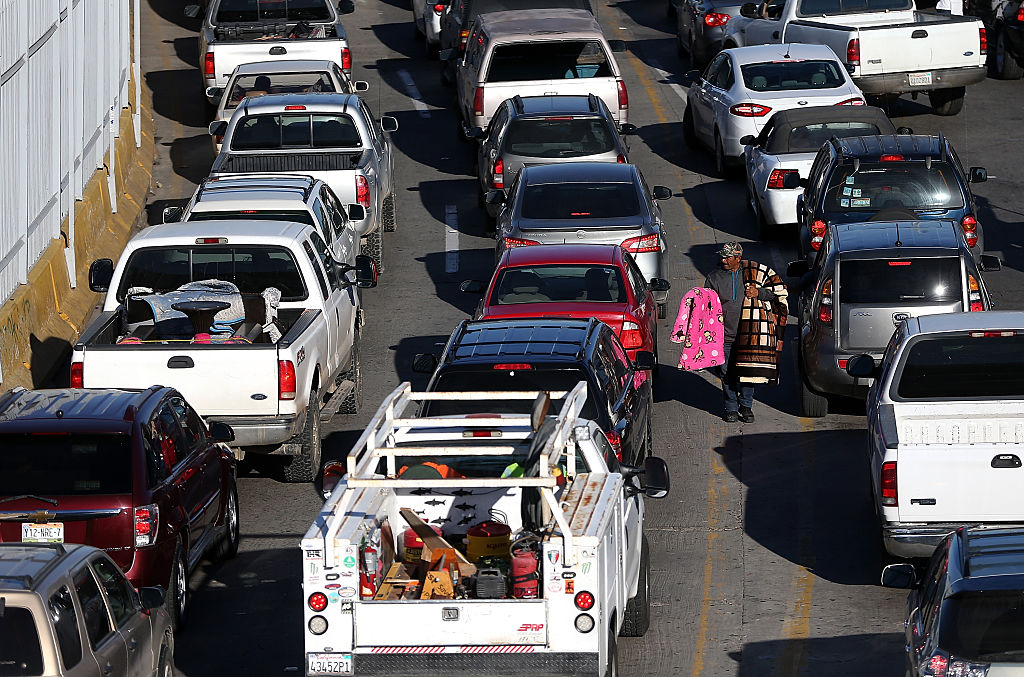 Для тех, кто живет в приграничной зоне, пересечение границы — обычная рутина. Семья того же Леонардо ездит в Штаты в среднем пару раз в месяц, а иногда и чаще. Лазерная виза есть у 90% мексиканских жителей приграничья, имеющих профессию и постоянную работу. В мексиканских приграничных городах работает специальный телеканал, который показывает очереди у нескольких ближайших пунктов пересечения границы 24 часа в сутки в режиме реального времени, чтобы жители могли решить, когда и где им лучше пересечь границу, не стоя в очередях. Здесь есть свои часы пик, которые зависят от дня недели, времени суток, американских и мексиканских праздников. Самая длинная очередь скапливается у перехода между двумя наиболее популярными у туристов приграничными городами — Сан-Диего и Тихуаной. Для тех, кто ездит часто и не желает долго ждать, существует специальный пропуск Sentri, под который выделена крайняя левая полоса. Стоит он около $100 в год на человека, и если в одной машине едет семья, то пропуск нужен каждому ее члену — выходит недешево.