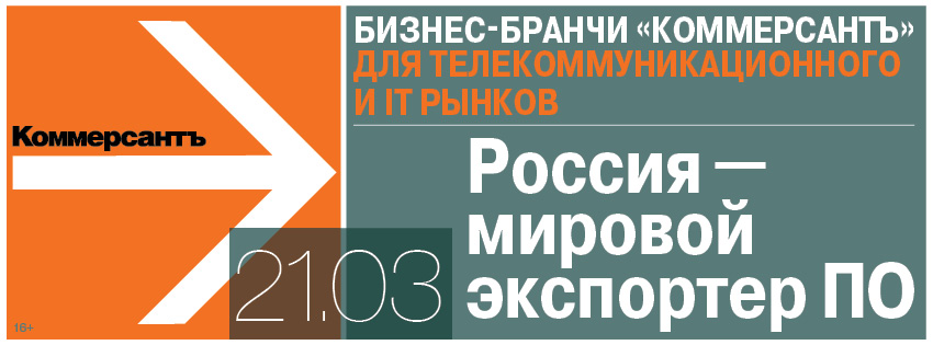 Москва, 21 марта 2017 года. В бизнес-бранче «Россия — мировой экспортер ПО», организованном ИД «Коммерсантъ» при поддержке Минкомсвязи, приняли участие представители органов власти, общественных организаций, институтов развития и руководители IT-компаний. Участники обсудили, какие инфраструктурные и законодательные проекты создаются государством для поддержания, развития и экспорта отечественного ПО и какой опыт экспорта софта уже накоплен у бизнеса.