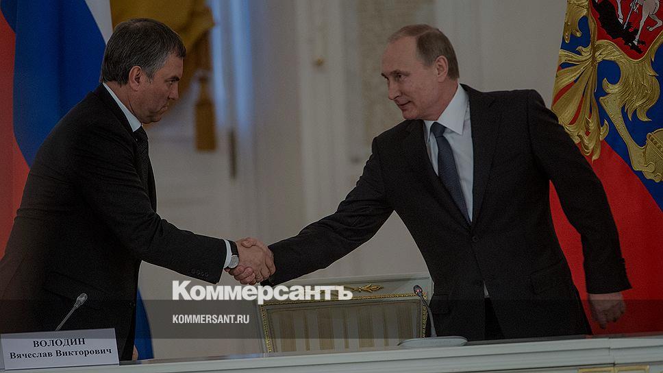 Спикер Госдумы Вячеслав Володин и президент России Владимир Путин