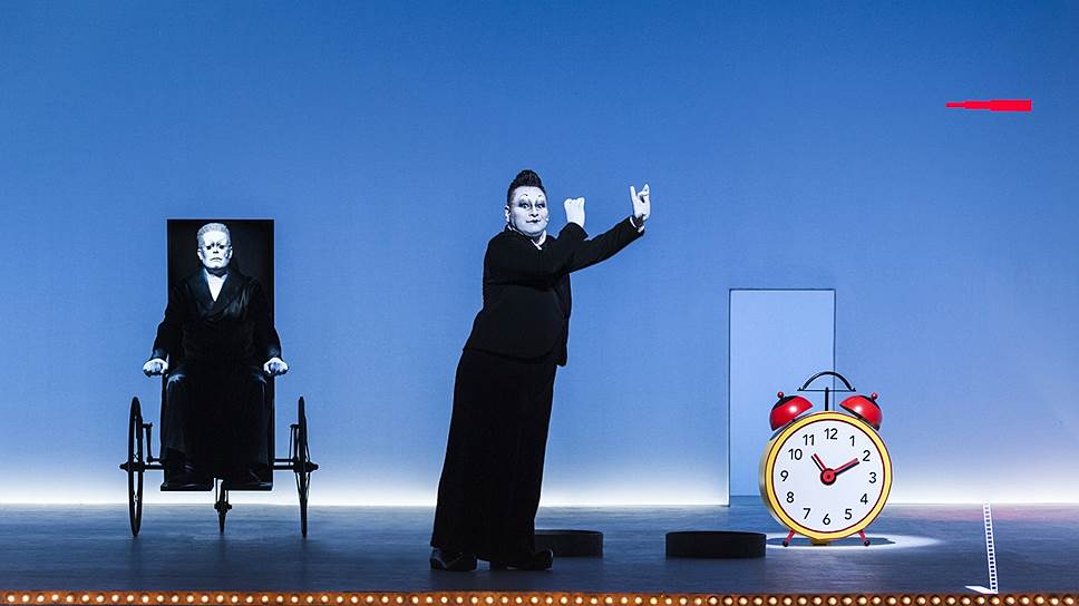 Можно долго описывать, как Уилсон перемигивается через десятилетия с Беккетом — отчаяние абсурдистов полувековой давности, если глядеть из сегодняшнего мира, иногда видится ложной тревогой. Впрочем, само время как категория тоже потеряло доверие художника: и если оно не нравится, стоит, как это делает Клов, перевернуть обратной стороной огромный желто-красный будильник — а там другой циферблат, и на нем совсем иначе расположены стрелки. В конце действия Клов, все время пытающийся покинуть Хамма, наконец решается уйти. Но Уилсон и экзистенциальный выбор героя превращает в занятный аттракцион — персонаж, собравшись в дорогу, появляется с маленьким зонтиком и игрушечной сумочкой. И вот, когда остается только уйти, с него вдруг падают черные штаны, и он застывает на месте с комической гримасой на лице. "Все кончилось!" — громким криком торжествующе рифмуется пролог и финал. Никто на свете не умеет рассказать о смерти так независимо, красиво и бесстрашно, как Роберт Уилсон. Тем более что жизнь на самом деле продолжается — новый интендант "Берлинер ансамбля" Оливер Резе уже объявил, что в полностью обновляемом в новом сезоне репертуаре театра "Конец игры" все-таки останется.