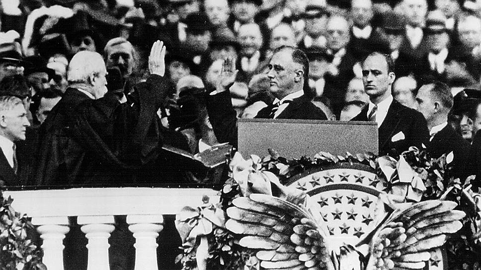 Франклин Делано Рузвельт приносит присягу во время инаугурации, 20 января 1933 года