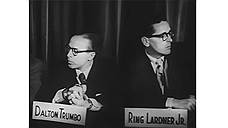 На противоположном полюсе подпольного Голливуда — уникально одаренный во всем, за что бы он ни брался, Трамбо, сколотивший целую артель репрессированных писателей. Проблема артели заключалась в сущем пустяке: ее участники были слишком хорошими профессионалами. Трамбо, меняя маски, сумел дважды завоевать "Оскар", чего в прошлой жизни ему не удавалось. О'кей: мастерство Йена Маклеллана Хантера, получившего — вместо Трамбо — награду за сценарий "Римских каникул" (1953), сомнений ни у кого не вызывало. Когда же получать "Оскар" за сценарий "Смельчака" (1956) не явился Роберт Рич, объяснение, что этот неведомый дебютант не отходит от постели жены-роженицы, никого обмануть уже не могло. Рич то ли вообще не существовал в природе, то ли был кем-то вроде кассира, сыгранного Вуди Алленом.