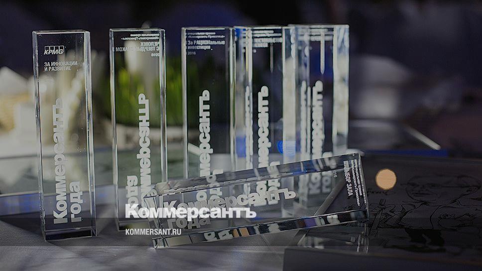 Председатель правления АО КБ "Ассоциация" Михаил Гапонов. Победитель в номинации «Человек с твердым знаком». Премию вручает директор по развитию «Ъ-Приволжье» Елизавета Зубакина