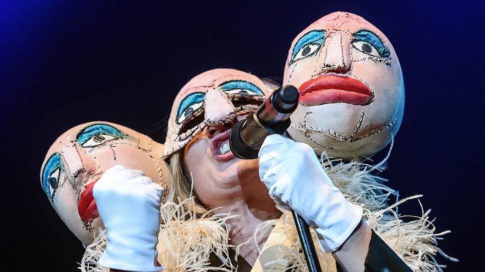 О том, как певица выстраивает свой визуальный образ по ходу концерта, можно написать диссертацию. Можно попытаться проследить сюжет, повинуясь которому она перебирает маски и солнцезащитные очки; меняет игривую шляпку на осьминога; прямо на сцене выпрыгивает из брюк, чтобы надеть просторную юбку; заворачивается в бесформенные мешки; надевает на свою голову еще две кукольные головы или же влезает в мужской костюм с широкими плечами, между делом намекая на верность традиции — лет тридцать назад в таком же выступал на концертах Talking Heads Дэвид Бирн. Рошин Мерфи вполне по силам сменить образ три раза за песню — и когда в глазах уже очень сильно рябит, в голову приходит мысль, что не стоит искать в этой бесконечной череде деталей единую историю или хотя бы связь с текстами песен. На протяжении всей своей сольной карьеры Рошин Мерфи все же очень сильно тяготела к абсурду (наверное, поэтому мы так мало слышим ее по радио).