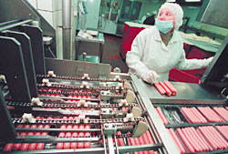 | Работа на новом сосисочном транспортере требует повышенного внимания |