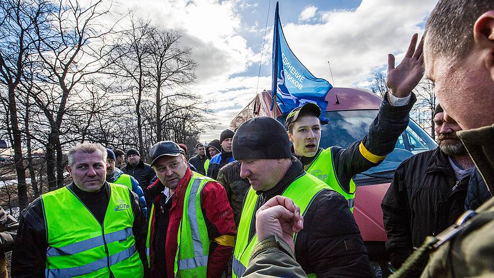 В Санкт-Петербурге акция началась в полдень: перевозчики припарковали свои грузовики и легковые автомобили на Московском шоссе. В общей сложности в акции участвовали более 100 человек. Еще до начала акции около своего дома полиция задержала лидера ОПР Андрея Бажутина за вождение без прав, рассказал “Ъ” секретарь ОПР Сергей Владимиров. По его словам, дальнобойщики планируют «жить на дороге», чтобы их требования (отменить систему «Платон» и транспортный налог) были услышаны. Участники акции, по его словам, собираются ночевать в грузовиках. Для обеспечения их жизнедеятельности на обочинах дороги уже поставили биотуалеты и разбили полевую кухню.