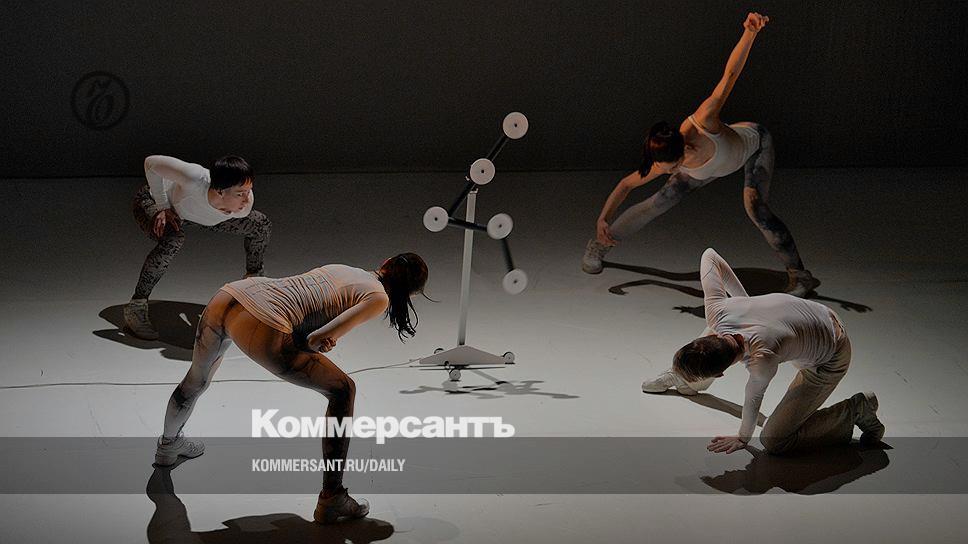 Впрочем, центром хореографической композиции является не человек, а кинетический объект, созданный Николаем Панафидиным: этакий раскладной метр с 10-сантиметровыми дисками на местах сочленений, он закреплен на штативе и ездит по сцене вдоль и поперек. Части-секции объекта беспрестанно движутся, распрямляясь и складываясь в одной плоскости, но в разных положениях и сочетаниях. Артисты (три женщины и один мужчина) тоже движутся — тоже преимущественно вдоль и поперек. Их руки (подчеркнуто выпрямленные либо резко согнутые в локтях) и ноги (вытянутые до предела, сложенные в глубоких приседаниях или растянутые в шпагатах), видимо, должны соперничать с кинетическим перпетуум-мобиле в свободе движений и количестве комбинаций складывания-раскладывания. Люди проигрывают вчистую: смотреть на их получасовые телесные потуги гораздо скучнее, чем на развязный мобиль. Впрочем, хореограф Пона поняла это еще до начала публичных показов, объяснив в программке причину: "Когда танцовщики импровизируют, они пытаются достичь состояния свободы, но при этом упираются в ограничения человеческого ума и тела". Тут возникает естественный, но вполне риторический вопрос: почему бы ей, выдвинутой в номинации "Лучший хореограф", не поработать над "ограниченными" умами и телами своих подопечных?