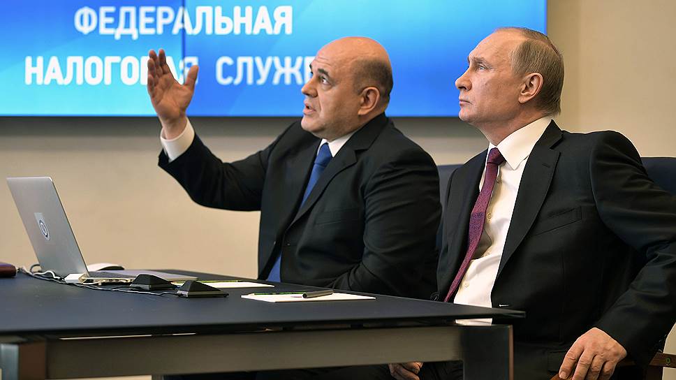 Глава ФНС Михаил Мишустин (слева) и президент России Владимир Путин