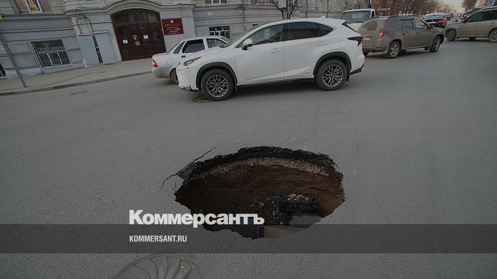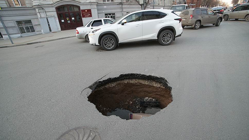 Провал грунта на проезжей части произошел в Самаре вечером во вторник, 11 апреля. Авария случилась на пересечении улиц Ульяновская и Молодогвардейская возле архитектурно-строительного института самарского технического университета.