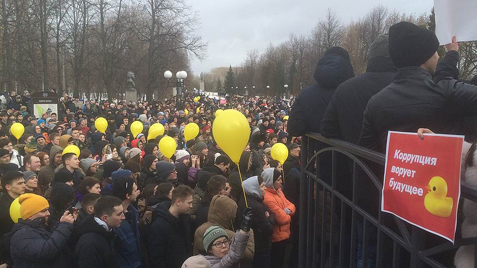 Митинг против коррупции и за отставку премьер-министра РФ Дмитрия Медведева собрал в Казани более 1,5 тыс. человек. Чиновникам предлагалось согласовать на выбор три площадки. Однако власти в ответ на уведомление Эльвиры Дмитриевой сообщили, что все заявленные ею площадки, в том числе парк «Крылья Советов», заняты другими мероприятиями. При этом альтернативное место для проведения мероприятия не было предоставлено. Такие действия властей за несколько дней до акции Вахитовский райсуд Казани признал незаконным, и городской исполком его решение не обжаловал.