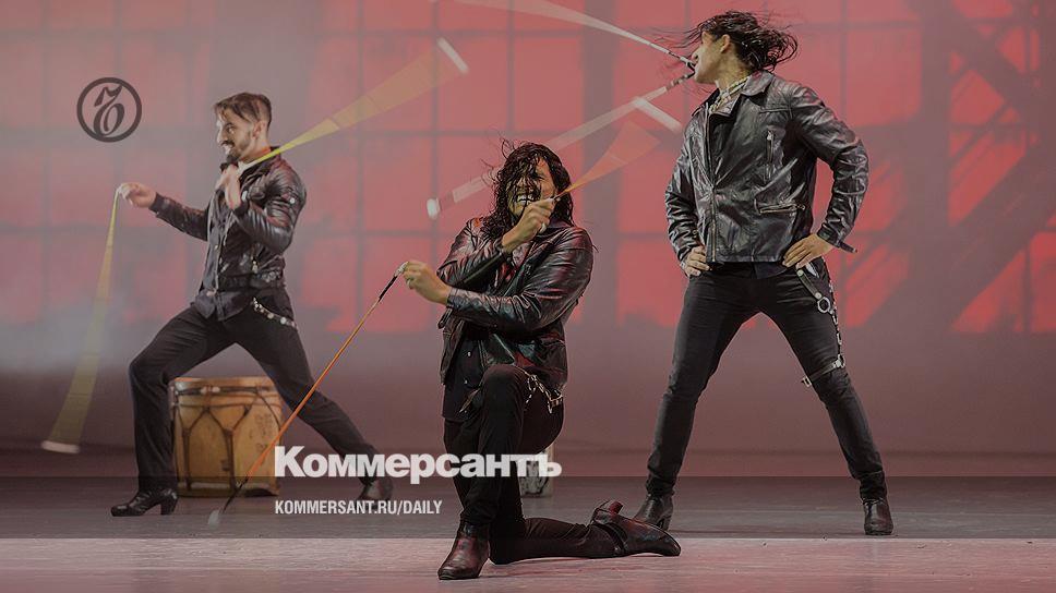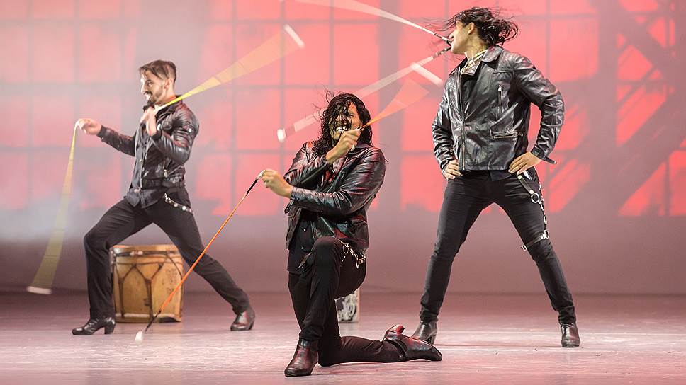 Зал стонал и грохотал овацией; такой реакции не добился ни великолепный Семен Чудин, превосходно исполнивший коварные вариацию и коду из "Дочери фараона", ни легконогие виртуозы Дмитрий Загребин и Вячеслав Лопатин в шуточном номере Йохана Кобборга "Les lutins". Победить балетного акробата смогли только горячие аргентинские парни в кожаных косухах и сапогах со скошенными каблуками — группа Malevo со своим "Маламбо". Надо сказать, что фестиваль Dance Open ежегодно запускает в балетную заводь каких-нибудь эстрадных "плохих парней" с танцевальными "зажигалками", но эти аргентинцы превзошли всех. Представьте себе "Гаучо" ансамбля Моисеева, только исполненное в два раза быстрее и неизмеримо виртуознее. Плюс национальный темперамент, плюс стать, плюс техника, впитанная с пеленок. И наконец, болас — металлические шары на веревках, которые танцовщики, ударяя ими об пол, крутят в таком сумасшедшем темпе, что грохот шариков вдвое опережает дробный перестук каблуков. Императорская Александринка выла, как стадион. Так псевдофольклорный национальный танец восторжествовал над искусным балетным глобализмом.