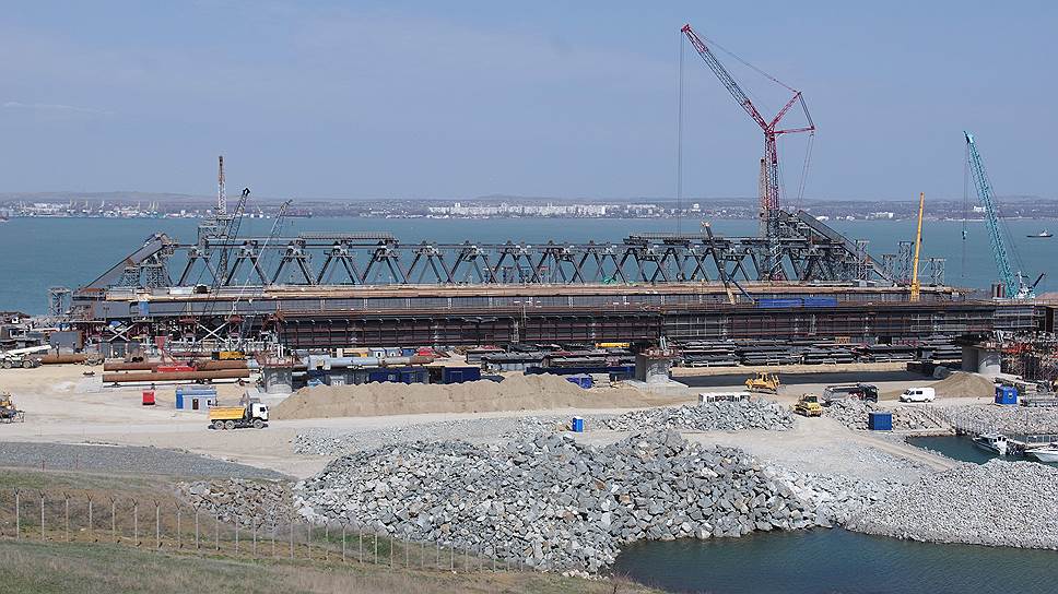 В проекте строительства Крымского моста начался монтаж плавучих опор, на которых будут доставляться и монтироваться арочные пролеты – сообщили «Ъ-Юг» в информационном центре «Крымский мост». «Мы выполнили первый этап: сформировали корпуса понтонов, на их палубах смонтировали фундаменты под металлоконструкции и палубное оборудование – лебедки, модули, гидро- и электростанции. Специалисты провели операцию по выводу понтонов из сухих доков и приступают ко второму этапу – самому сложному. Он заключается в том, чтобы сформировать понтоны в плавучие опоры катамаранного типа», – пояснил Игорь Дрей, директор филиала «Севастопольский морской завод» АО «Центр судоремонта «Звездочка» Объединенной судостроительной корпорации. В итоге мостостроители получат транспортный комплекс, который позволит с помощью буксиров поочередно доставить по морю к месту монтажа в Керченском проливе готовые арочные пролетные конструкции – сначала железнодорожную, затем автодорожную, которые предстоит поднять на высоту 35 метров. Доставка арочных пролетов к фарватеру запланирована на конец августа-начала сентября.
