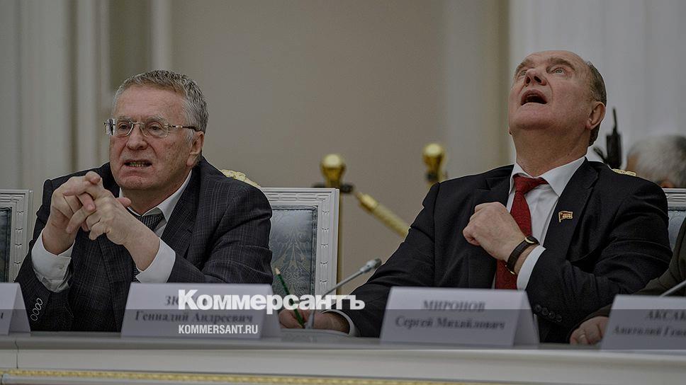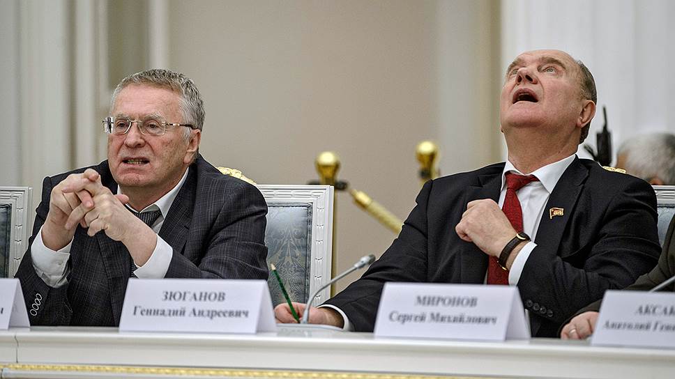 Лидер ЛДПР Владимир Жириновский (слева) и лидер КПРФ Геннадий Зюганов