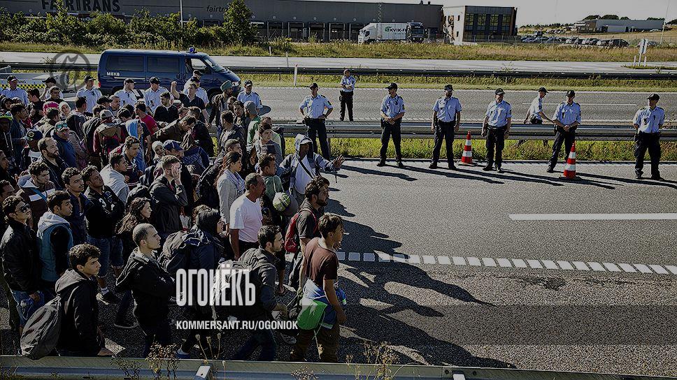Очередь в Данию на границе с ФРГ год назад. Многие из этих беженцев следом встанут в очередь за пособиями