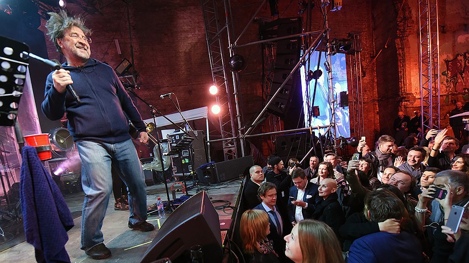 Организаторы, памятуя о хаммаме, который сам собой возник год назад на их «Квартирнике» во время концерта «Неприкасаемых», в этот раз решили просто возвести большой шатер во дворе бизнес-центра на Гороховой. К счастью, звезда их вечера, солист группы ДДТ Юрий Шевчук, пребывал в этот день в прекрасном настроении (ему все понравилось на саундчеке), так что поддал гостям жару. Этого жару хватило на всех пришедших, включая режиссера Алексея Германа. (Он, кстати, на форум не просто по-соседски зашел — в рамках ПМЭФ 3 июня в кинотеатре «Аврора» состоится спецпоказ его фильма «Довлатов»). На самом деле это был лучший концерт из всех, что видел форум. Есть много отличных, прекрасно работающих артистов, мы все их много раз видели — но почти никто и никогда не бывал на закрытом концерте группы ДДТ. Иногда коллектив может выступить, так сказать, от сердца. И такой концерт случился на «Красном Октябре» много лет назад, на вечеринке радио «Коммерсантъ» FM. Стандартное условие Юрия Шевчука для запросов на корпоративные выступления: миллион на благотворительность, не рублей, и мы сыграем. Сколько пришлось перевести на благотворительность «Открытию», выяснить не удалось, однако, в конце вечера господин Шевчук сообщил: «Сегодня вместе мы помогли благотворительному фонду “Ночлежка”». Что придумает «Открытие» в следующем году — невозможно даже представить: это был прыжок выше головы.