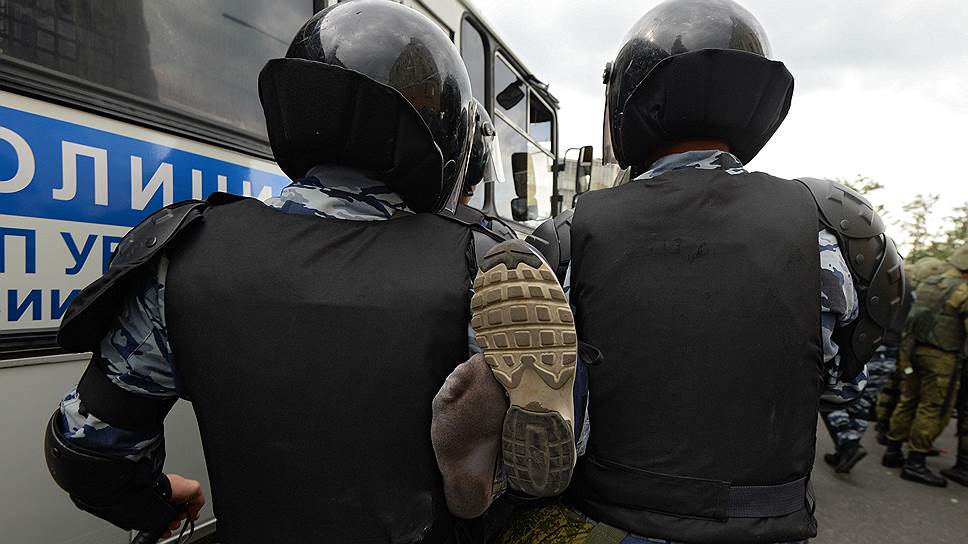 Сотрудники полиции во время задержания участника митинга 12 июня