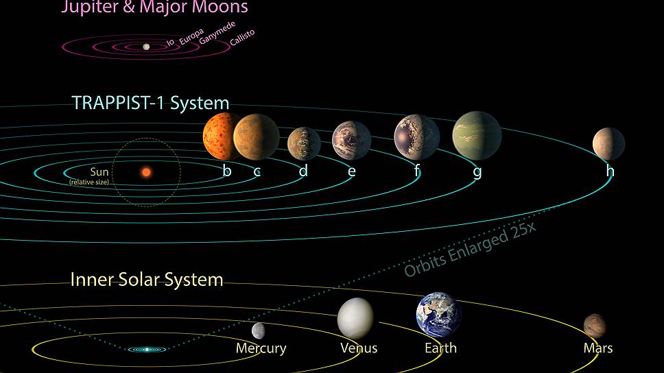 Совместными усилиями у звезды Trappist-1 обнаружили целых семь транзитных планет! И все они оказались сравнимы по размеру с Землей.