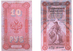 Между тем положение универсального средства платежа постепенно закрепилось за бумажными деньгами. Кредитные билеты выпускались в очень широком спектре — от 1 до 500 рублей. Эмиссия бумажных денег ограничивалась жестким законом 1897 года, запрещавшим выпуск не обеспеченных золотым содержанием денег на сумму свыше 300 млн рублей. Госбанк почти не использовал свое эмиссионное права, и в 1900 году процент покрытия банкнот золотом достигал 170%. По сути, до начала первой мировой войны на денежном рынке России обращались не банкноты, а золотые сертификаты.