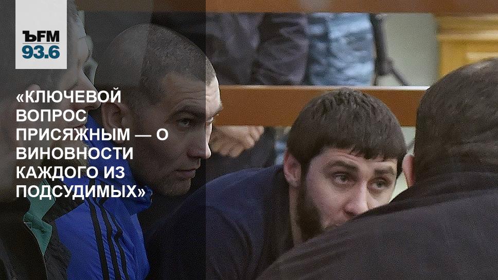 Присяжные готовятся вынести вердикт по делу об убийстве Бориса Немцова, который был застрелен в центре Москвы в феврале 2015 года. На скамье подсудимых находятся пять человек, в том числе предполагаемый убийца Заур Дадаев. В четверг на совещании в Московском окружном военном суде ждут, когда будет оглашен список вопросов к присяжным и, возможно, вынесен вердикт коллегии присяжных. Подробности заседания в прямом эфире рассказал корреспондент «Коммерсантъ FM» Владимир Расулов.