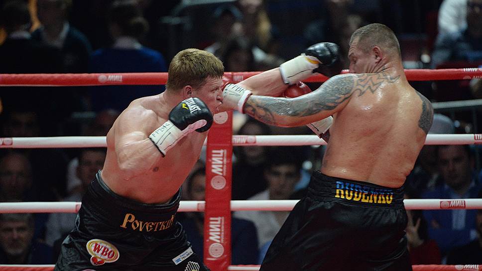Российский супертяжеловес Александр Поветкин в субботу в Москве на площадке ГЦКЗ «Россия» (Лужники) провел бой за титулы Всемирной боксерской организации (WBO) и Всемирной боксерской ассоциации (WBA) с украинцем Андреем Руденко. Поединок завершился победой россиянина по очкам. Этот бой — возвращение Поветкина на профессиональный ринг.