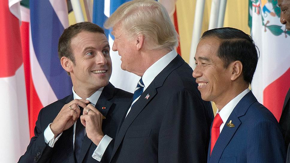 Президент Франции Эмманюэль Макрон, президент США Дональд Трамп и президент Индонезии Джоко Видодо