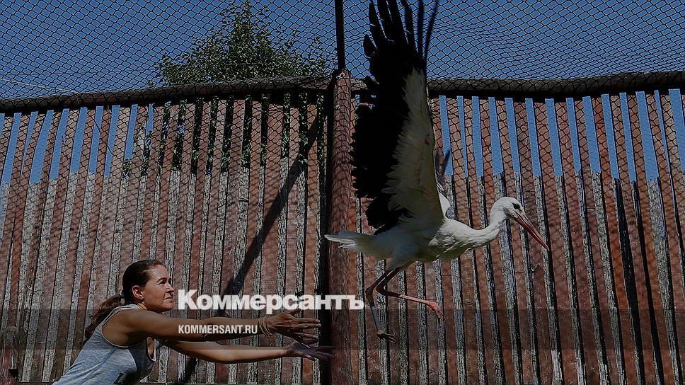 Хортобадь, Венгрия. Работница Национального парка ухаживает за раненным аистом