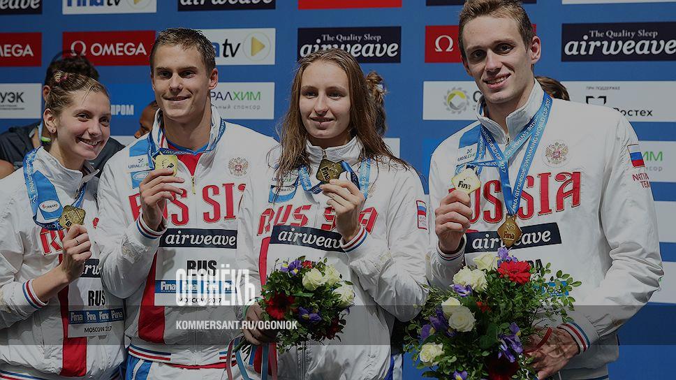 Недели не прошло после триумфального выступления в Будапеште (с чемпионата мира по водным видам спорта российская сборная привезла 25 медалей), как наших пловцов ждал первый этап Кубка мира FINA / airweave. И спортсмены не подкачали: в смешанной комбинированной эстафете 4 х 50 метров в бассейне СК "Олимпийский" первое место заняли Светлана Чимрова, Владимир Морозов, Вероника Попова и Кирилл Пригода
