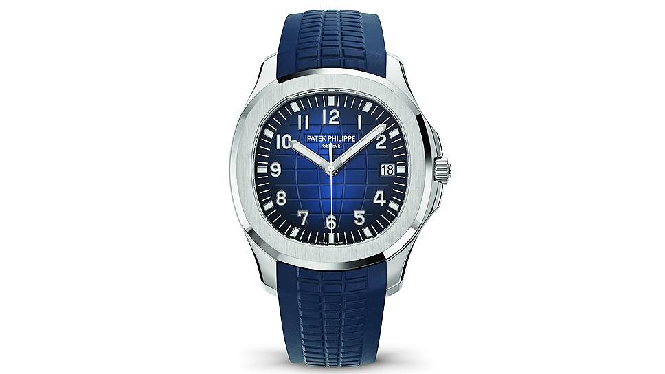 Во-первых, это мужская модель Aquanaut (Ref. 5168G) с увеличенным по сравнению с часами прошлых лет корпусом — диаметр у этой модели 42,2 мм. Но все очень узнаваемо. У них, как и у их прототипа, модели Patek Philippe Nautilus, очень характерная форма иллюминатора — квадрат с сильно закругленными углами. А округлый восьмиугольный ободок вот уже почти полвека остается своеобразной визитной карточкой часов Patek Philippe.