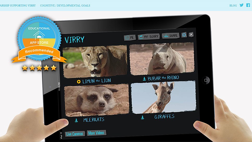 Отдельного внимания заслуживает возможность наблюдать за животными: камеры установлены в одном из самых красивых парков дикой природы в Эль-Айне (ОАЭ). Совсем недавно к ним были добавлены несколько новых камер прямого эфира из заповедника LEWA в Кении. Тут, конечно, как и в случае с реальным зоопарком, всегда есть шанс не обнаружить животных в поле экрана, но вы всегда можете переключиться на другую камеру, покормить львиц или пройти очередную викторину, например. К тому же в последнем обновлении разработчики добавили видео 360/VR: пользователи теперь могут крутиться с планшетом или смартфоном, любуюсь африканским небом над головой и травой под ногами, а, перейдя в режим VR, можно воспользоваться очками виртуальной реальности. Голосом в русской версии Virry стал профессор кафедры биогеографии географического факультета МГУ, доктор биологических наук и ведущий «В мире животных» Николай Дроздов.
