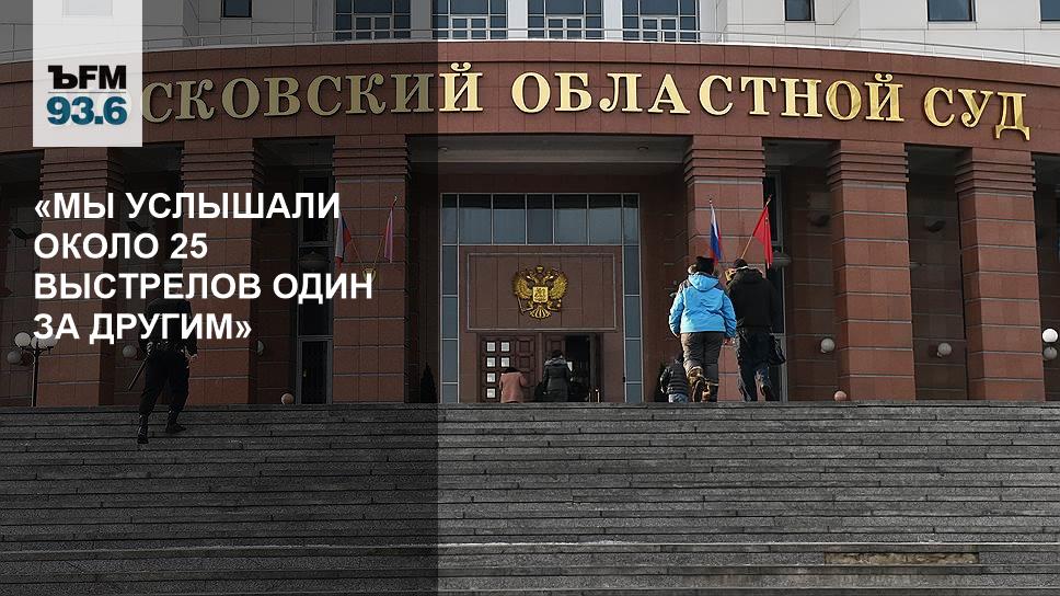 — Я находилась на судебном процессе на четвертом этаже, а перестрелка, по всей видимости, была на третьем. Я слышала выстрелы — около 25 выстрелов, один за другим, все происходило очень быстро. Я делала аудиозапись заседания, поэтому я примерно могу посчитать количество выстрелов. Мы не слышали даже речь прокурора в тот момент, когда были произведены выстрелы, настолько это было громко и четко, практически как будто бы было за спиной.
