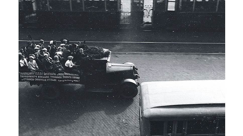 Яков Хенкин. «Агитационный грузовик ОСОАВИАХИМа на Ленинградской улице»