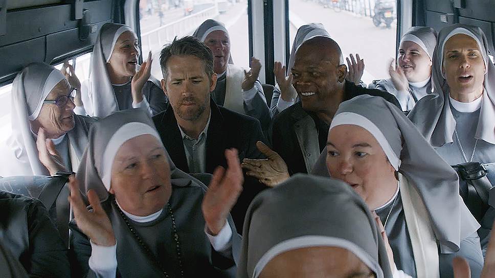 Райан Рейнолдс, в актерском арсенале которого имеется примерно два слегка отличающихся друг от друга выражения лица, играет роль, для которой достаточно и одного из них — деревянного, зажатого, довольно туго соображающего «человека в футляре», любящего, чтобы все делалось по правилам. Фейерверки в основном достаются на долю Сэмюэла Л. Джексона, герой которого в любой непонятной ситуации ведет себя так же непредсказуемо, как пресловутая обезьяна с гранатой. И он, конечно, может вытянуть даже самый слабый сценарий, просто на разные лады произнося «мазафака» (если бы еще это не звучало так нелепо в русском дубляже).