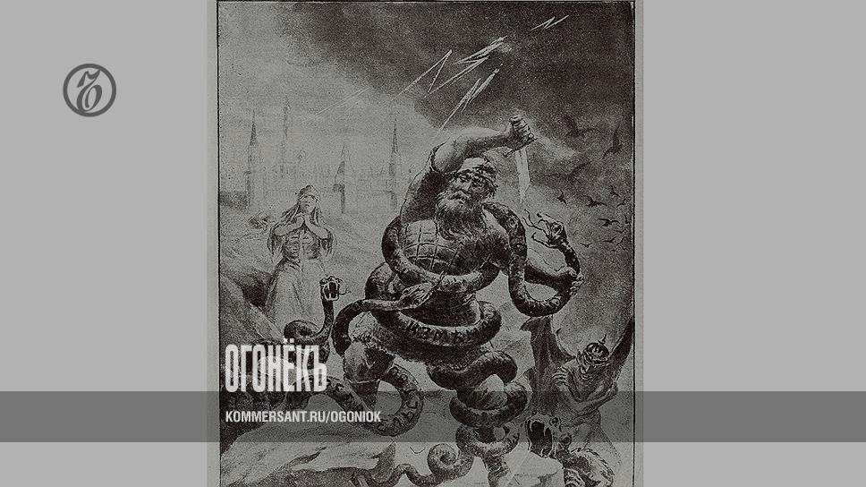 На змеях, которые опутали руского богатыря, написано "Измена", "Предательство", "Шпионаж"