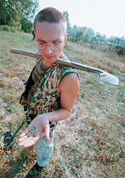 — На самом деле у нас самих есть удостоверения клуба "Раритет", и мы иногда честно говорим, что ищем монетки,— успокаивает Дмитрий.— Но и это не всегда спасает. Одного из наших, Володю, забрала с поля милиция, которую вызвали местные жители. Ему пришлось откупаться тысячей рублей.