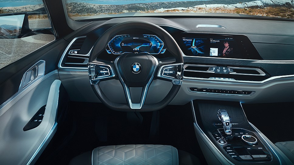 Кроссовер с большой панорамной крышей рассчитан на шесть человек, для каждого из которых сделано отдельное кресло, отделанное кожей. Также для декора интерьера применяются алюминий и дерево. Второй ряд сидений оснащён персональными сенсорными экранами мультимедийной системы. Передняя панель также выполнена из дисплеев — у концепт-кара X7 iPerformance полностью цифровая панель приборов, а также сенсорные мониторы для управления второстепенными функциями автомобиля.