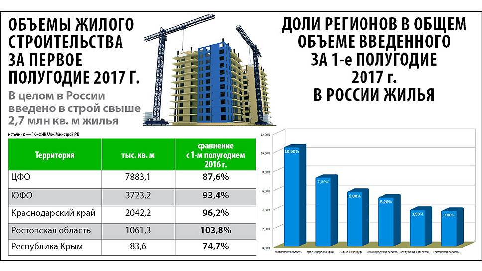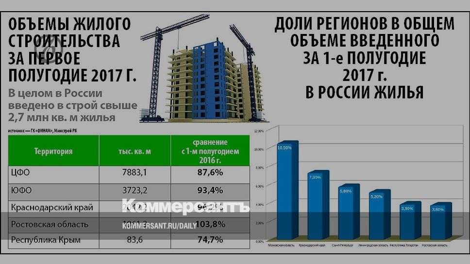 После непростых для строительной отрасли лет ситуация в сфере строительства жилья стабилизировалась, отмечает управляющий партнер компании «Манн, Черемных и Партнеры» Иван Черемных. За первое полугодие 2017 года в стране было введено в строй более 27,9 млн кв. м жилья, что составляет 88,7% от показателя за аналогичный период прошлого года.