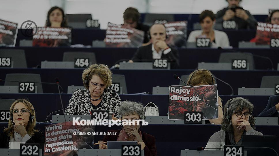 Дебаты по ситуации в Испании начались с того, что несколько парламентариев развернули в зале каталонский флаг. «Прошу вас убрать флаг, попирающий суверенитет одного из государств»,— вмешался в ход заседания один из испанских депутатов, обращаясь к председателю парламента Антонио Таяни. «Показали флаг? Хорошо. Теперь уберите его, мы хотим провести серьезные дебаты»,— примирительно предложил тот «нарушителям».