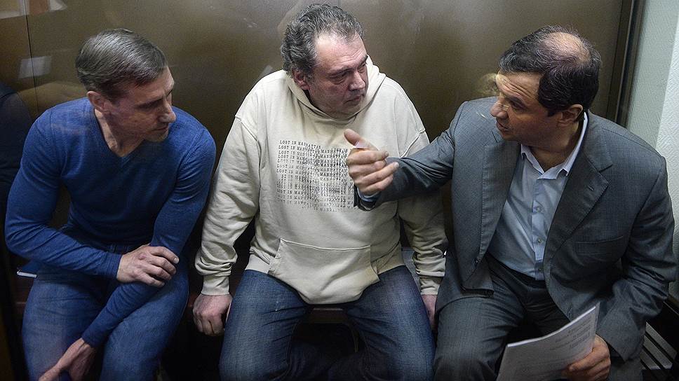 Бывший директор ФГУП "Центрреставрация" Олег Иванов (слева), бывший заместитель министра культуры России Григорий Пирумов (справа), и бывший директор департамента управления имуществом и инвестиционной политики министерства культуры России Борис Мазо (в центре)