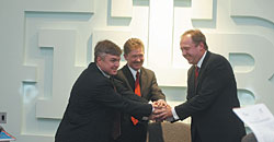 | Банкир Столяренко, газовик Миллер и медиамагнат Йордан(слева направо) сложили новую медиафигуру |