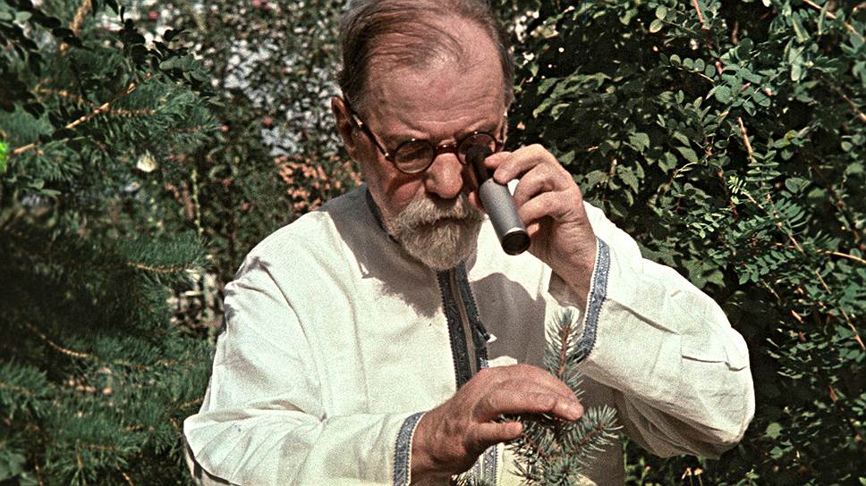 «Теперь я убежден,— писал член-корреспондент АН СССР астроботаник Г. А. Тихов,— что не за горами то время, когда советские астронавты доставят на Землю первый гербарий марсианской растительности» (на фото — Г. А. Тихов в астроботаническом саду, 1953 год)