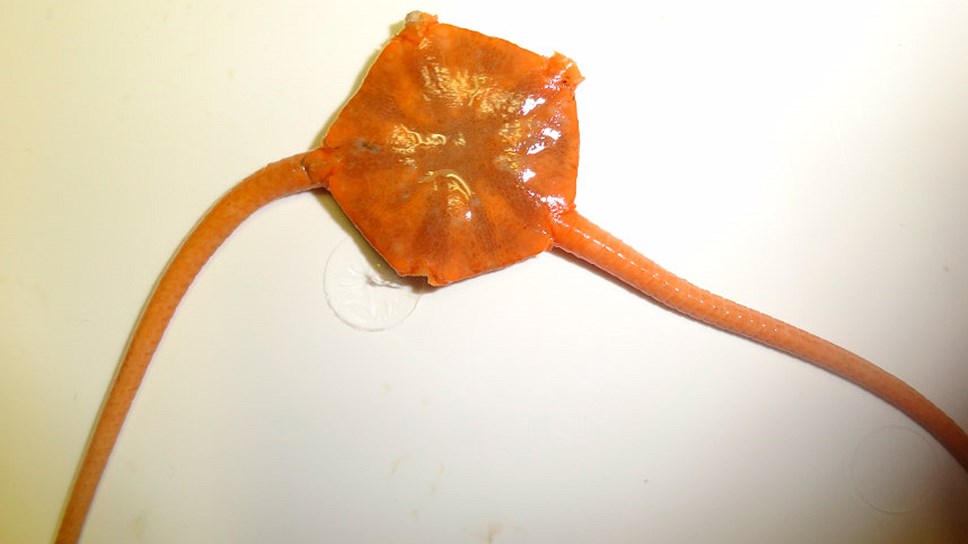 Глубоководную змеехвостку выловили в 2015 году в Охотском море, недалеко от Курильской впадины, на глубине около 3000 метров. Это животное внешне напоминает морскую звезду и приходится ей родственником по таксономическому типу.