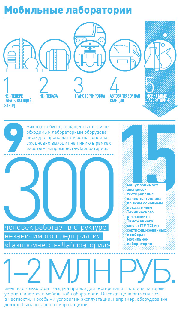 Как совершенна ни была бы система, она не работает без проверки ее настройки. Именно для этого в системе «Газпром нефти» были организованы передвижные лаборатории качества. С виду это обычные микроавтобусы, внутри которых находится оборудование стоимостью более десятка миллионов рублей.