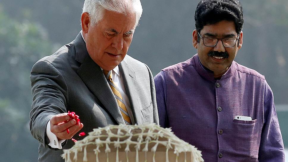 Между тем в Дели госсекретарь США с первых минут визита всячески подчеркивал особое расположение к Индии. Так, посетив мемориал Махатмы Ганди в районе Радж-Гхат — место, где в 1948 году было кремировано тело лидера индийского национально-освободительного движения, господин Тиллерсон осыпал черный мрамор постамента розовыми лепестками.