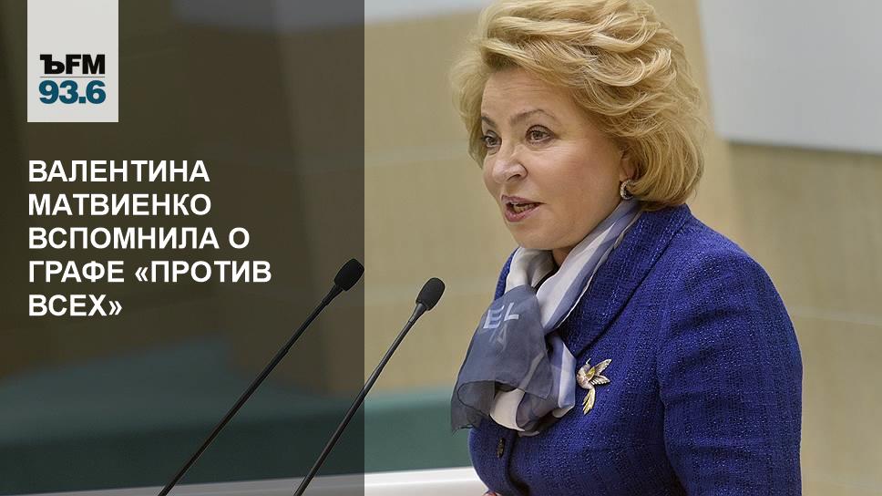 Графу «против всех» могут вернуть в избирательные бюллетени, заявила спикер Совета федерации Валентина Матвиенко, которая уже не раз выступала за такое изменение. При этом глава верхней палаты парламента отметила, что к этому шагу власти будут двигаться постепенно, и строка «против всех» может появиться в среднесрочной перспективе.