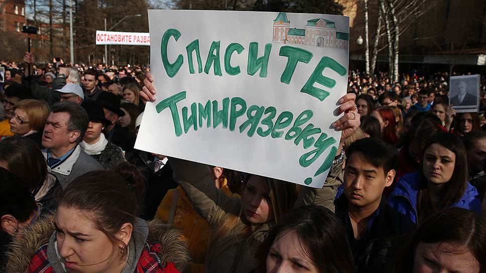 Нового руководителя в вузе восприняли настороженно, говорит господин Соловьев: «У нее педагогическое образование, она не имеет никакого отношения к сельскому хозяйству». Но отказаться от предложенной кандидатуры вузу не удалось. 14 июня 2017 года Минсельхоз отменил выборы ректора в аграрных вузах, заменив их прямым назначением. А в устав Тимирязевской академии добавил пункт о том, что кандидат в ректоры может и не иметь «специальной подготовки», если обладает «достаточным и практическим опытом». «На митинге мы вместе с коллегами из других вузов потребуем вернуть прямые выборы»,— говорит господин Соловьев. «Мы планируем приехать на митинг и поддержать московских коллег, у нас те же самые проблемы»,— подтвердил “Ъ” завкафедрой Санкт-Петербургского государственного аграрного университета Сергей Широков. По его словам, летом Минсельхоз, отменив выборы ректоров, убрал из устава их вуза пункт о том, что любые изменения устава должны обсуждаться ученым советом. «Мы подали в суд, обратились в прокуратуру, в Думу, в администрацию президента»,— говорит он. В пресс-службе Минсельхоза сообщили “Ъ”, что отказ от выборов ректора — «распространенная практика», в том числе и в вузах Минобрнауки. «Минюст согласовал это решение»,— подчеркнул собеседник “Ъ”.