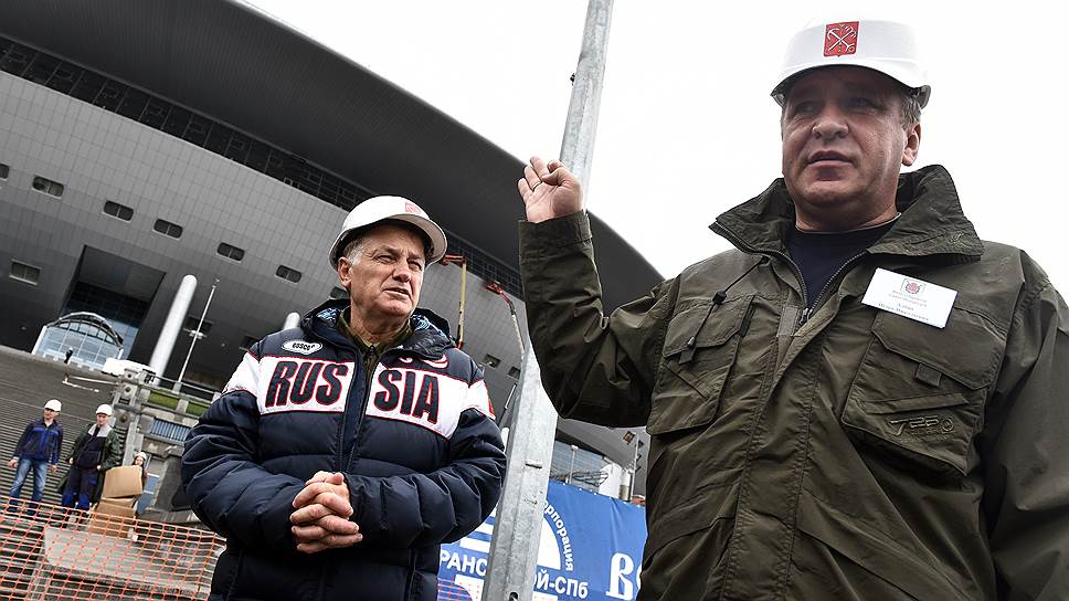 Спикер законодательного собрания Вячеслав Макаров (слева) и вице-губернатор Санкт-Петербурга Игорь Албин перед инспекцией стадиона Зенит-арена