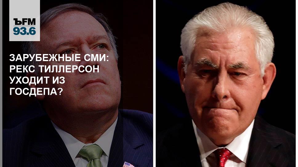 Дональд Трамп хочет заменить Рекса Тиллерсона на посту госсекретаря – должность может занять глава ЦРУ Майк Помпео, сообщает The New York Times. Издание отмечает, что между Трампом и Тиллерсоном есть серьезные разногласия, и рокировка может произойти в ближайшие несколько недель. Сообщается, что на посту главы ЦРУ Помпео сменит республиканец Том Коттон, который был одним из главных советников президента Трампа по вопросам национальной безопасности. Если замена состоится, то это будет самое короткое пребывание на посту госсекретаря за последние 120 лет. Новые перестановки в Белом доме стали одной из главных тем в зарубежных СМИ. Что пишут западные издания о возможной отставке Тиллерсона — в обзоре иностранной прессы на «Коммерсантъ FM»..