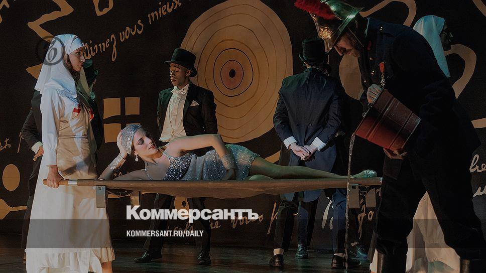 В Петербурге спектакль предварили разъяснительными анонсами и безымянным немым фильмом, демонстрирующим сбор публики в Театре Елисейских Полей 1920-х годов. Сам спектакль начинается неотчетливо: подсаженные в партер артисты, тоже разодетые по моде 1920-х, выскакивают на сцену после того, как ражий пожарник в золотой каске битых пять минут курит, мрачно разглядывая зрительный зал. Напудренные-напомаженные фрачники в цилиндрах безудержно флиртуют с блестящей во всех смыслах светской девицей. Салонные танцы эпохи — обрывки танго, томного вальса, фокстрота — чередуются с канканом, разнообразными физкульт-пирамидами и прочими пластическими конструкциями, в которых полураздетую деву можно возносить к небесам или качать на руках. В эту мюзик-холльную вакханалию вклиниваются персонажи и предметы, призванные напомнить истеблишменту 1920-х о недавней Первой мировой: медсестры с носилками — соблазнительница возлежит на них с достоинством мадам Рекамье; инвалидная коляска — на ней с лихостью гонщика выруливает на сцену один из кавалеров. Под финал на подмостки выскакивает хореограф-демиург, похожий на Человека-паука, только черный от макушки до пят. Принимая декоративные позы из фокинских спектаклей, он тщетно пытается сочинить балет для мужчин, возбужденных прелестями светской львицы и раздевшихся до исподнего (тут хореограф Берлин всласть поиронизировал над бывшим мэтром, а заодно и Дягилевым).