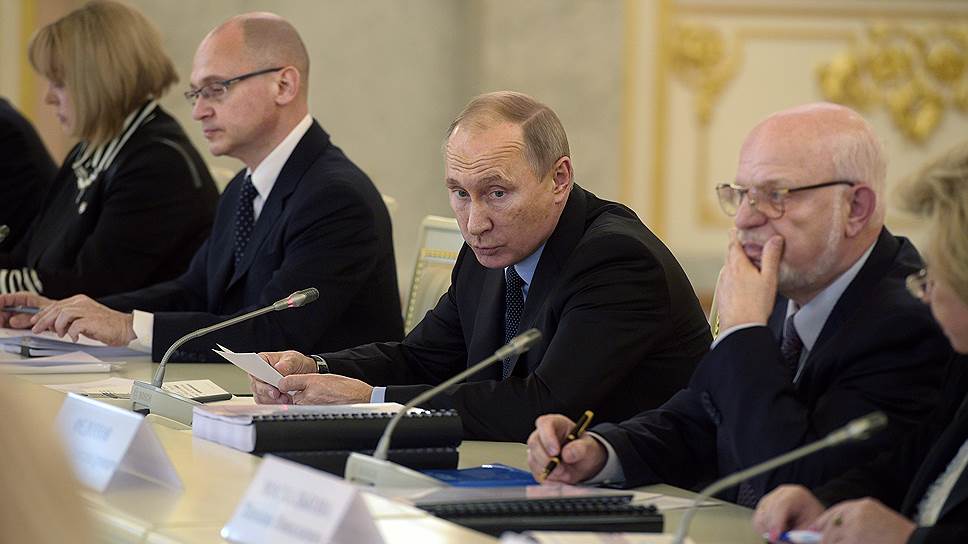 Президент России Владимир Путин (в центре) во время встречи с членами СПЧ в Кремле
