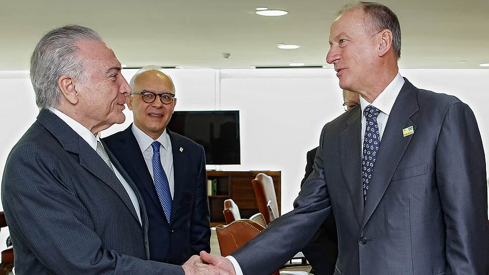 В бразильской столице в понедельник прошли переговоры между президентом страны Мишелом Темером и секретарем Совета безопасности РФ Николаем Патрушевым. Кроме того, члены российской делегации, включающей в себя представителей всех ключевых силовых ведомств страны, встретились с генералом Сержиу Эчегойеном — «серым кардиналом» бразильской политики. О чем шла речь на переговорах, выяснял в Бразилиа корреспондент “Ъ” Павел Тарасенко.